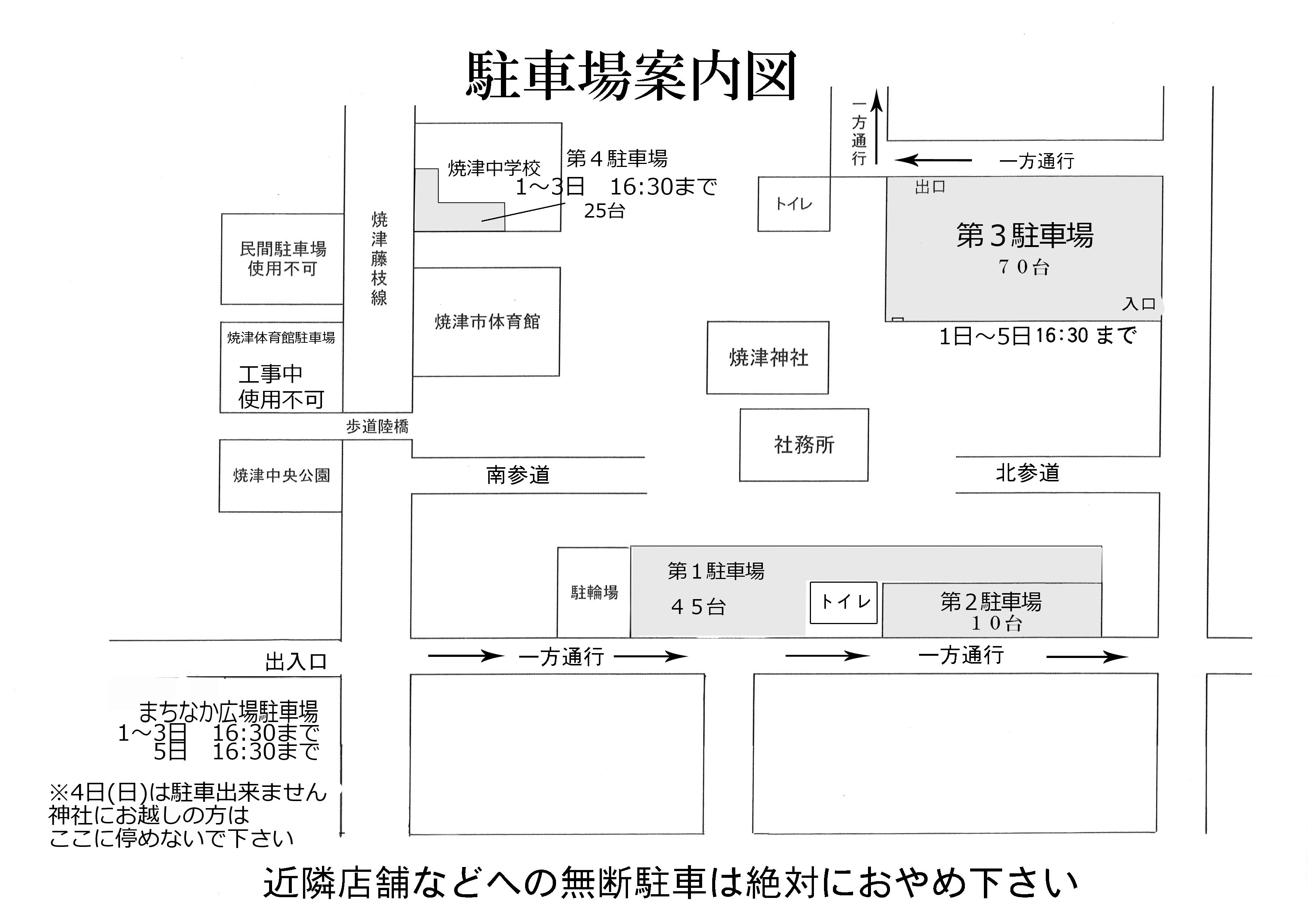 代替として1月1日~3日まで焼津中学校をお借りしておりますが、駐車可能な台数は減少しますので